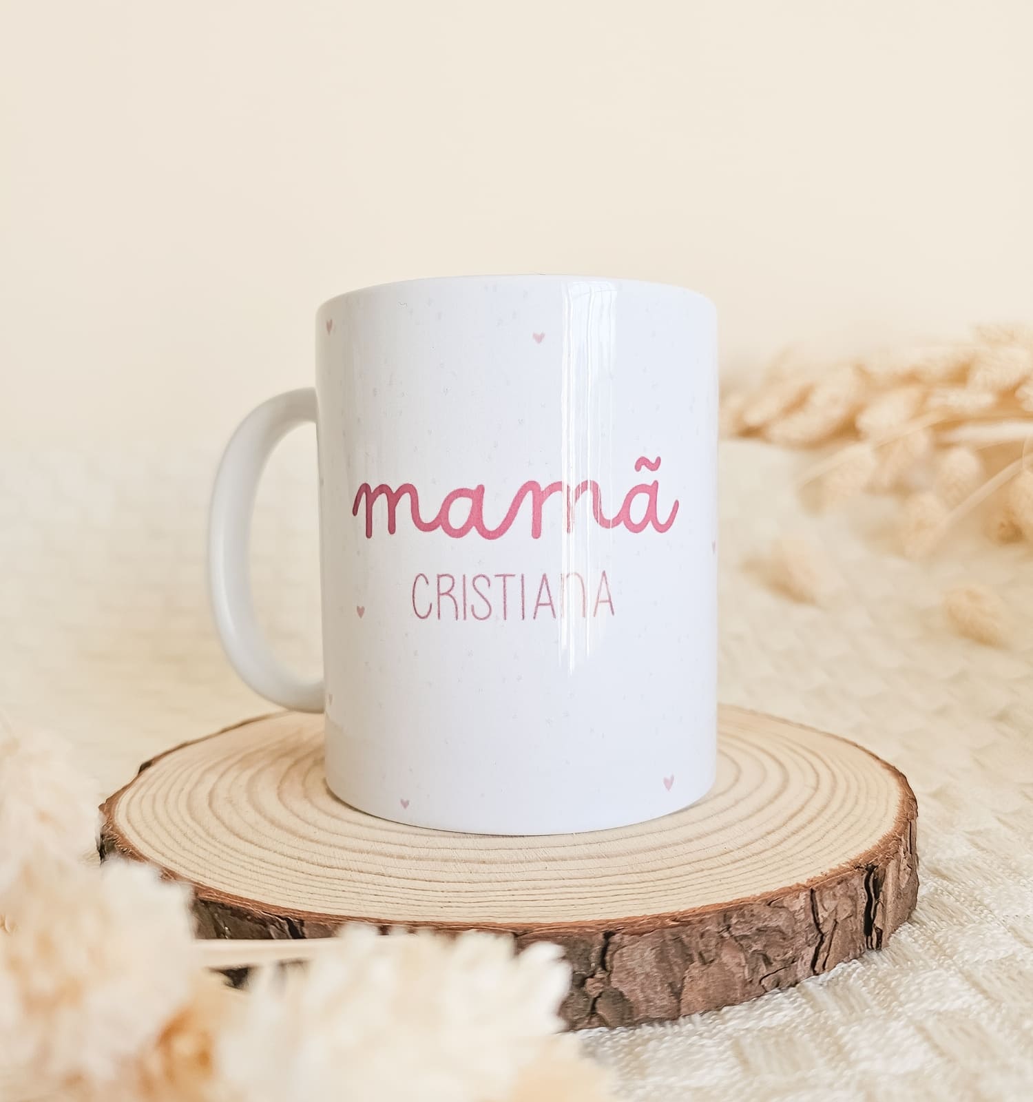 Caneca personalizada para mãe com nome e frase especial. Um presente único, delicado e cheio de amor.