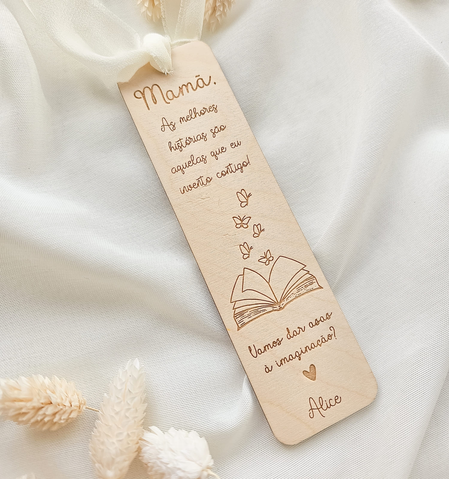 Marcador de livro em madeira personalizado com nome para mãe ou avó. Um presente simples, elegante e cheio de significado.